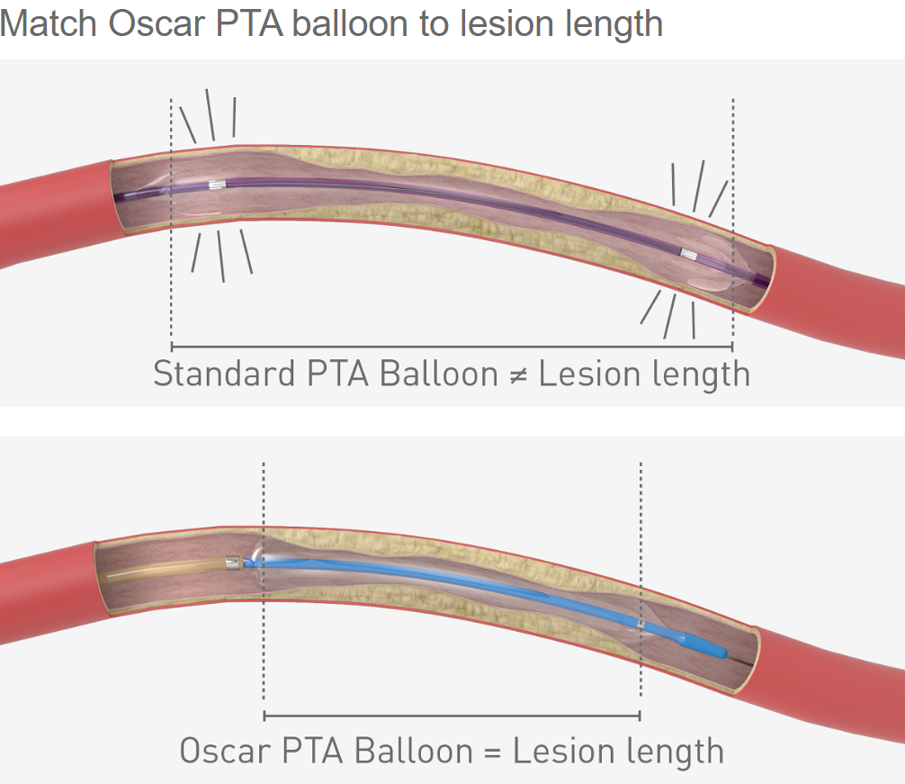 The unique solution allows in-vessel adjustments of the balloon length from 20 to 180 mm, enabling dilation of various lesion lengths with the same balloon.