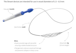 The Stream is developed using CEREBRAL NETTM platform, a proprietary braiding technology with proven real-time control and excellent radiopacity. The device’s unique design prevents collapse in tortuous anatomy, and allows optimizing wall apposition. The Stream’s high compliance and versatility provide the best fit for a wide range of vessel sizes and diverse anatomies.