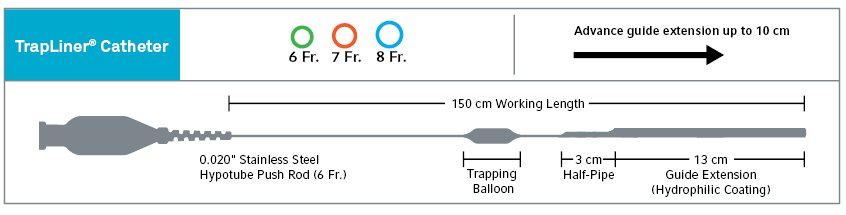 - TrapLiner® Catheter balloon is positioned proximal to the half-pipe channel: