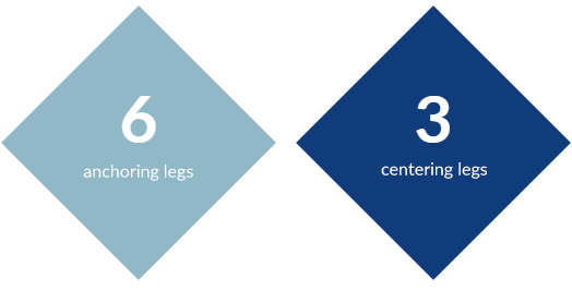 • A unique design with 6 anchoring and 3 centering legs